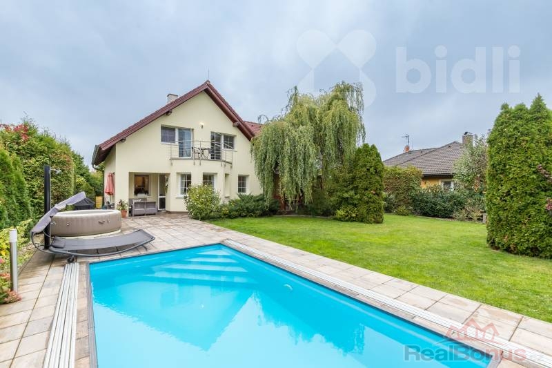 Pozemek o výměře 778 m2 nabízí upravenou zahradu s plně vzrostlou zelení, krytý bazénem se slanou vodou, protiproudem a tepelným čerpadlem a samozřejmě zahradní domek. Vjezd na pozemek zajišťuje elektrická brána na dálkové ovládání, parkování je možné přímo na pozemku.