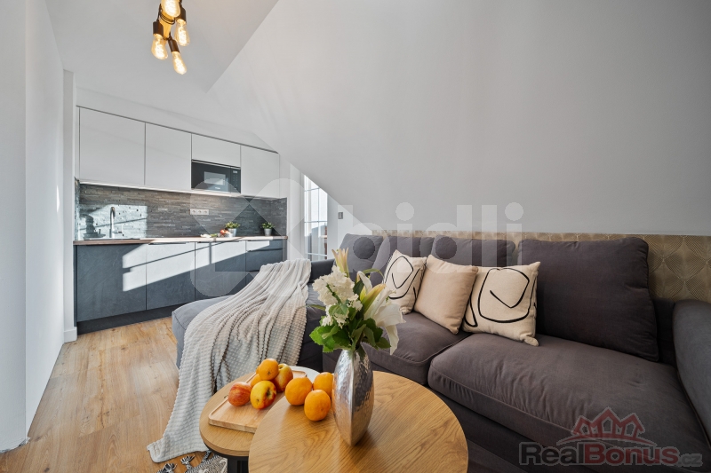 Prodává se včetně zařízení (Kuchyňská linka s vestavěnými spotřebiči, jídelní stůl, židle, rozkládací sedací souprava, konferenční stolek, manželská postel).