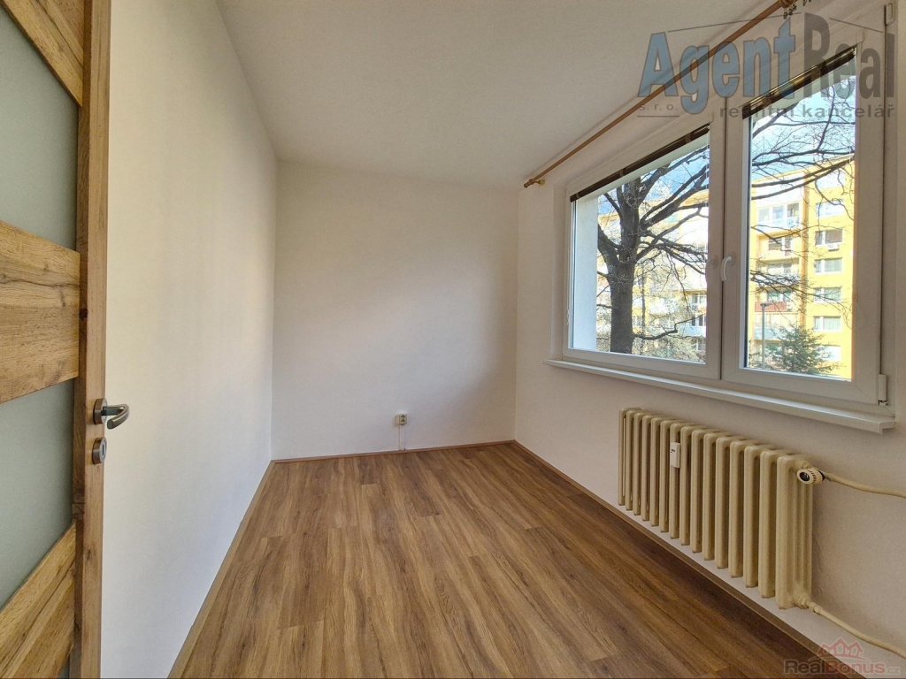 Nabízíme byt 4+1 v Šumperku, ul. Prievidzská, v osobním vlastnictví. Byt se nachází ve zvýšeném přízemí panelového domu. Dispozice: obývací pokoj 16.19 m2, pokoj 12.07 m2, pokoj 12.04, ložnice 8.04 m2, kuchyň s jídelním koutem 11.85 m2, předsíň 6.85 m2, koupelna 2.56 m2, WC 0.97 m2 a šatna 1.37 m2. Příslušenství k bytu tvoří lodžie 4.03 m2 (nezapočítává se do celkové plochy bytu) a sklepní box 4.11 m2. Byt je v udržovaném stavu, okna jsou plastová, bytové jádro je umakartové, vinylové plovoucí podlahy. Byt je napojen na centrální vytápění a ohřev teplé vody. Dům je po revitalizaci, s výtahem, má zateplenou fasádu, bez revitalizačního úvěru! Měsíční náklady v roce 2025 byly: 1282 Kč za vytápění, fond oprav 2134 Kč, provoz 301 Kč (tj. společná energie, správa, úklid, pojištění) + spotřeba teplé a studené vody, plynu na vaření a elektřiny. Cena je vč. provize i právních služeb. Před osobní prohlídkou se prosím podívejte na virtuální prohlídku na naší domovské stránce AgentReal, kde si byt prohlédnete mnohem lépe než z běžných fotografií či videa.