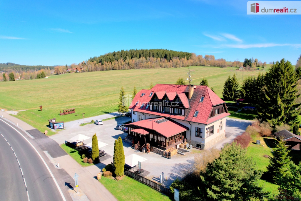 Cena je včetně provize RK a právního servisu.Více informací Vám poskytne makléř Tomáš Pelda., Dumrealit.cz Vám zprostředkuje prodej vybaveného udržovaného víceúčelového domu s č.p. 72, s pozemkem o výměře 9.897 m, který je provozován jako penzion (19 pokojů - 60 lůžek) s restaurací (80 míst) a wellness (bazén, vířivka, infrasauna apod.), v obci Hůrka (u vodní nádrže Lipno).