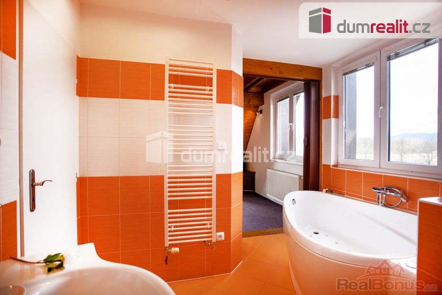 Fungující penzion je částečně podsklepený a je vystaven do 2 nadzemních podlaží s obytným podkrovím. Podrobné rozkreslení dispozice naleznete na orientačním plánku mezi fotografiemi. Z většiny pokojů je výhled na vodní nádrž Lipno.