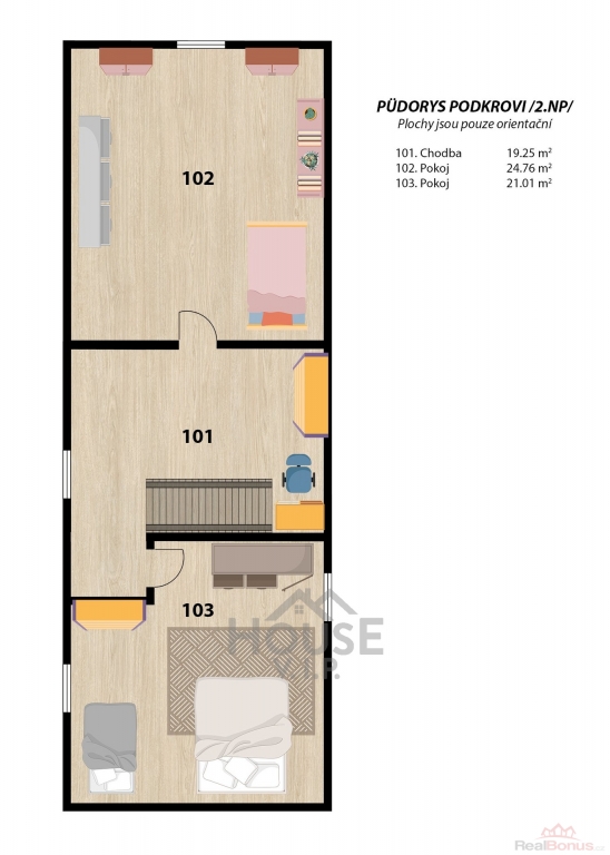 - 2 prostorné ložnice a hala ve druhém podlaží