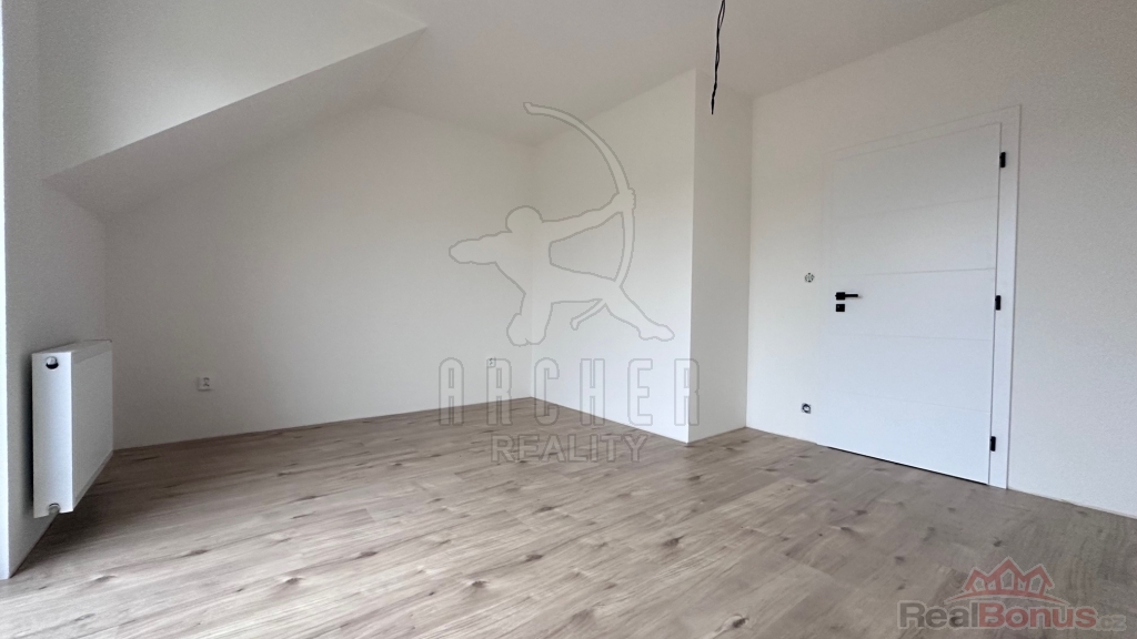 Dispozice přízemí: po vstupu do zádveří lze vstoupit do prostorného obývacího pokoje spojeného s kuchyňským koutem, odsud je i vstup na terasu a dále do zahrady. Přízemí nabízí i WC a možnost jít do garáže vnitřkem domu, což přináší spoustu výhod a praktického využití. Za garáží se nachází technická místnost s dalším vstupem na zahradu. V patře domu jsou dva větší a dva menší samostatné pokoje, dále šatna, technická místnost a koupelna se sprchovým koutem, vanou, dvěma umyvadly a WC.