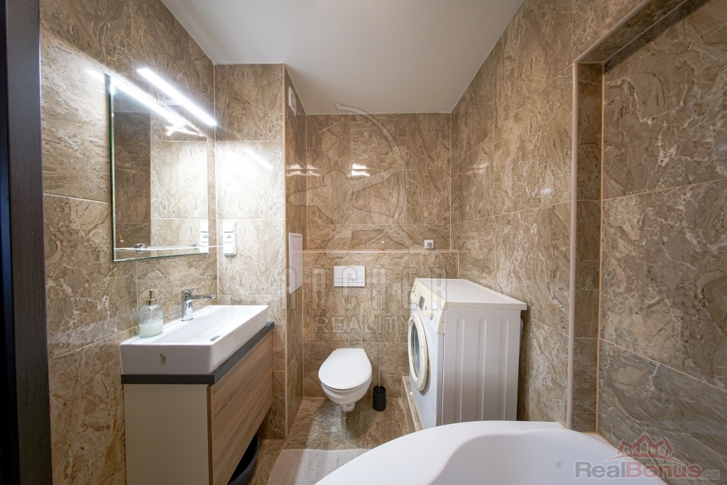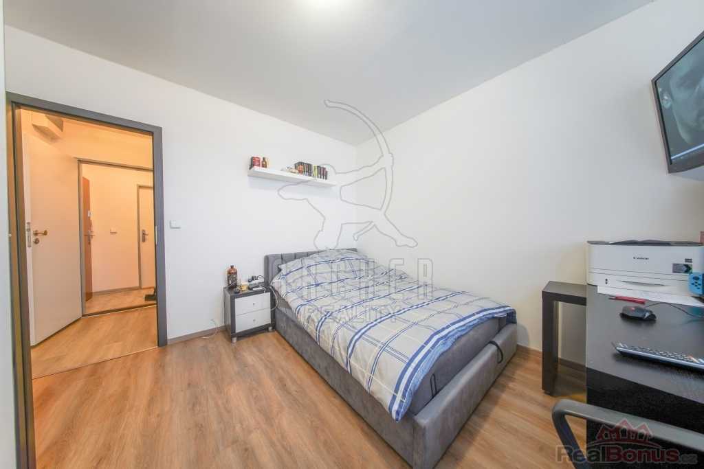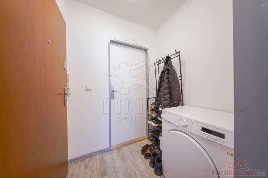 Byt 2+1 má předsíň s botníkem, ze které se vstupuje do bohatě velkého obývacího pokoje, vedle kterého je z jedné strany ložnice s velikou vestavnou skříní s posuvnými dveřmi a z druhé strany prostorná kuchyně s jídelním koutem. Z kuchyně se lze dostat na zasklenou lodžii a do koupelny s luxusní rohovou vanou a WC. Okna jsou otočena na západ.