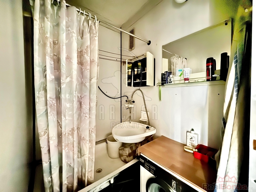 Z předsíně je vstup do koupelny se sprchovým koutem a umyvadlem. Toaleta je v samostatné místnosti.