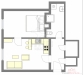Dispozice zahrnuje dvě velké místnosti, obývací pokoj s kuchyní, kde se přirozeně tráví nejvíce času, a prostornou ložnici, která nabízí dostatek klidu i místa.