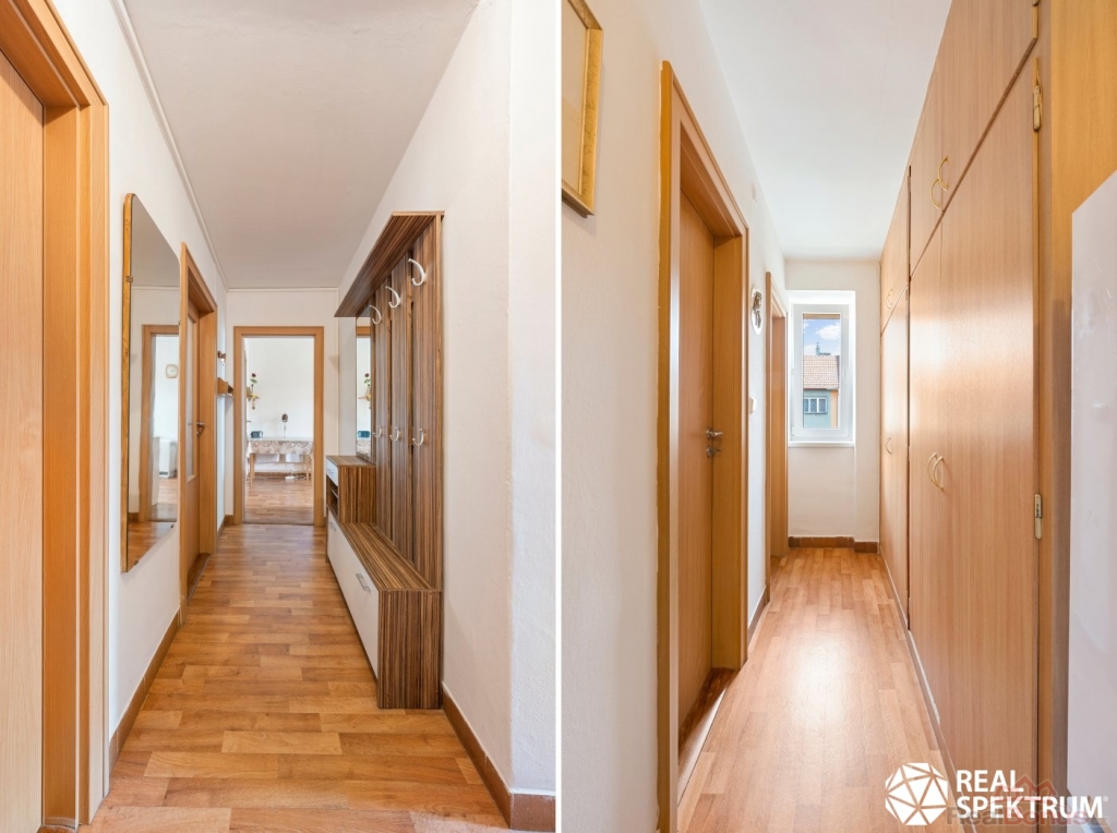V exkluzivním zastoupení nabízíme k prodeji byt o dispozici 2+1 o celkové podlahové ploše včetně dvou sklepů 66,9 m2. Byt má menší balkon do ulice a prosluněnou prostornou lodžii situovanou do zahrady za domem. Oplocenou zahradu můžete využít například k sušení prádla, posezení nebo si zde mohou hrát vaše děti.