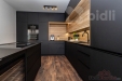 Moderní kuchyně na míru s ostrůvkem a v něm integrovanou digestoří.