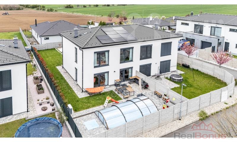 Nabízíme k prodeji luxusní polovinu dvojdomu (právně vymezenou jako bytová jednotka) v klidné a žádané lokalitě Tuchoraz u Českého Brodu. Tento dům z roku 2023 vyniká nejen svou prostorností, ale především nadstandardním vybavením a velmi nízkými provozními náklady.
