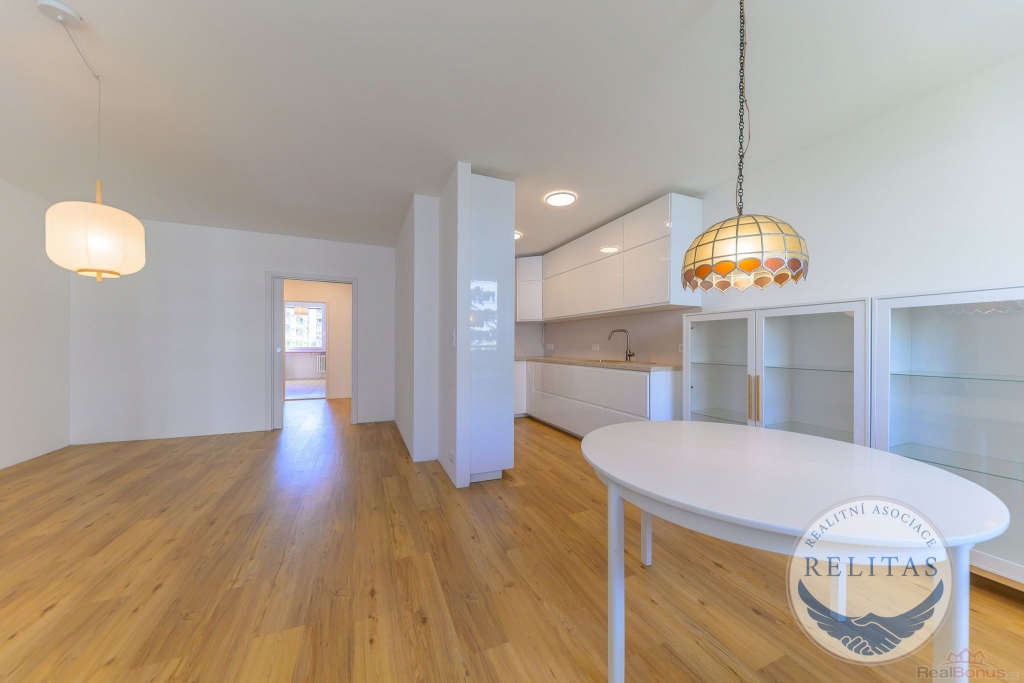 Exkluzivně nabízím k pronájmu nově rekonstruovaný byt 3+kk o velikosti 83,3 m s lodžií 8 m, který se nachází ve 3. patře zatepleného panelového domu v ulici Hněvkovského, Praha 11 Chodov.