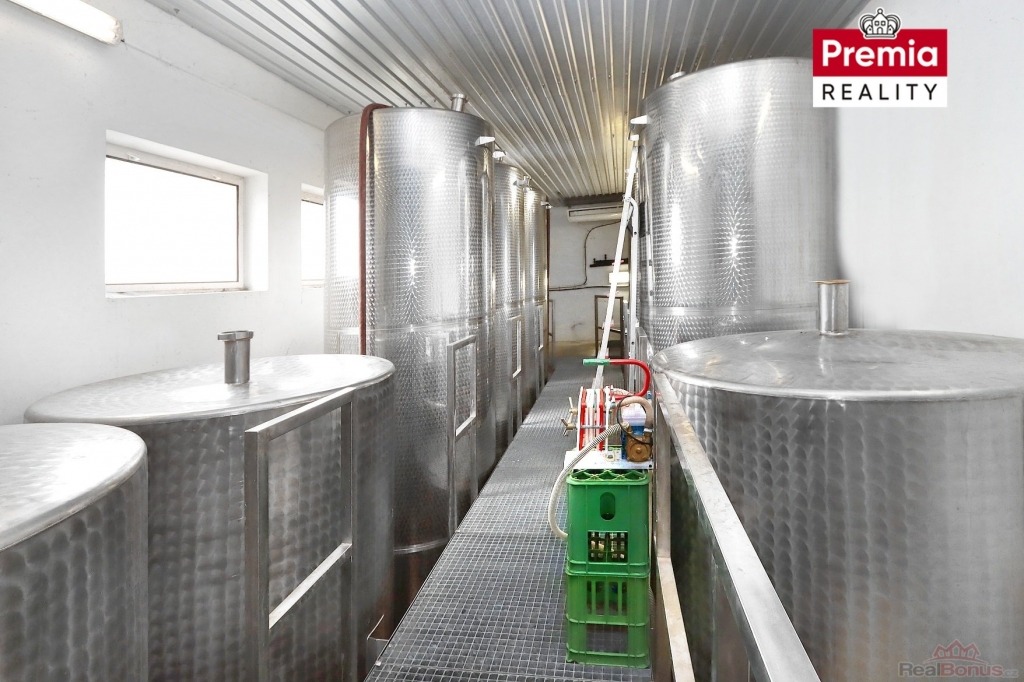 1. Výrobní hala (500 m2): Plně klimatizovaný prostor určený ke kompletnímu technologickému procesu ? od příjmu hroznů přes řízené kvašení v nerezových tancích až po finální skladování vína.