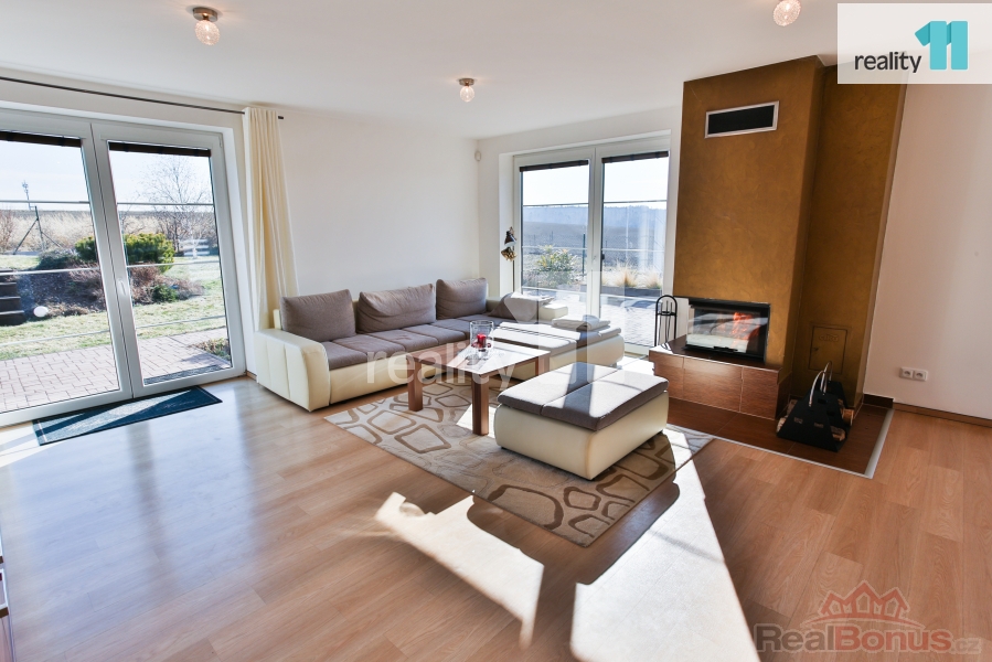 Praktický do posledního detailu. Při vstupu do domu oceníte prostorné zádveří (4,5 m) a technickou místnost (5,4 m). Chůzí po chodbě minete hostinský pokoj (12,3 m) a spodní koupelnu (4,8 m) a ocitnete se ve velkém světlém obývacím pokoji s kuchyní (60,5 m). Pokoji dominuje designový krb na dřevo.