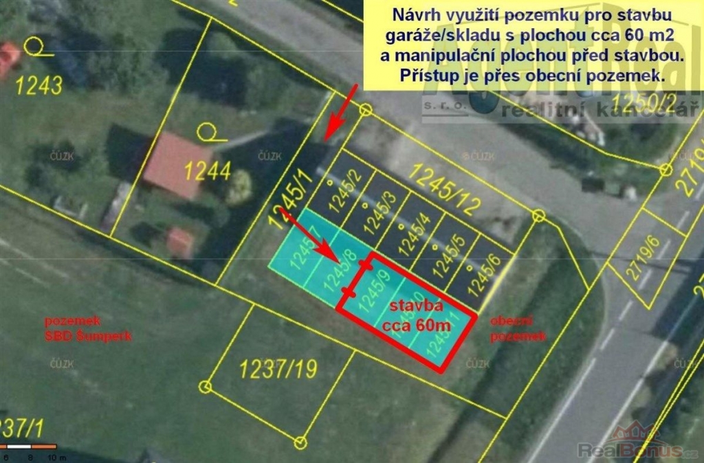 Nabízíme prodej pěti menších pozemků (5 x 21 m2) ve Velkých Losinách. Pozemky jsou v územním plánu vedeny jako stavební. Pozemky tvoří souvislý celek, navazují na stávající řadové garáže, přístup je přes obecní pozemek. Lze využít pro stavbu garáže/dílny, jako zahrádku, k parkování pro osobní či obytný vůz atp, Prodej je možný i jednotlivě.