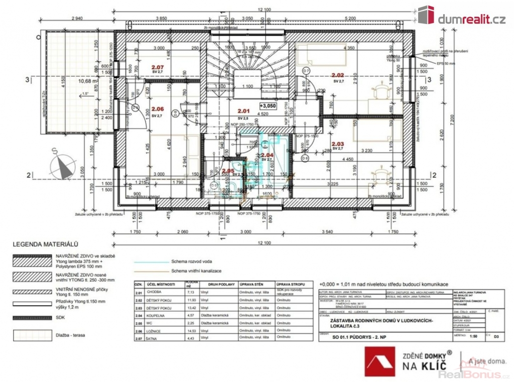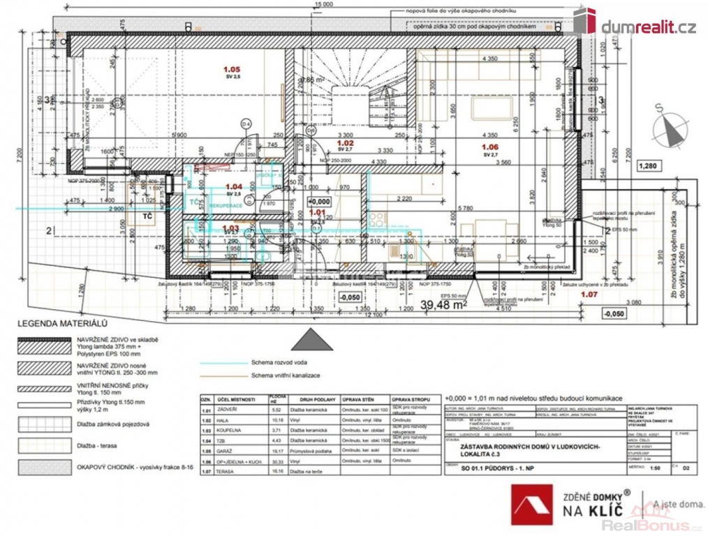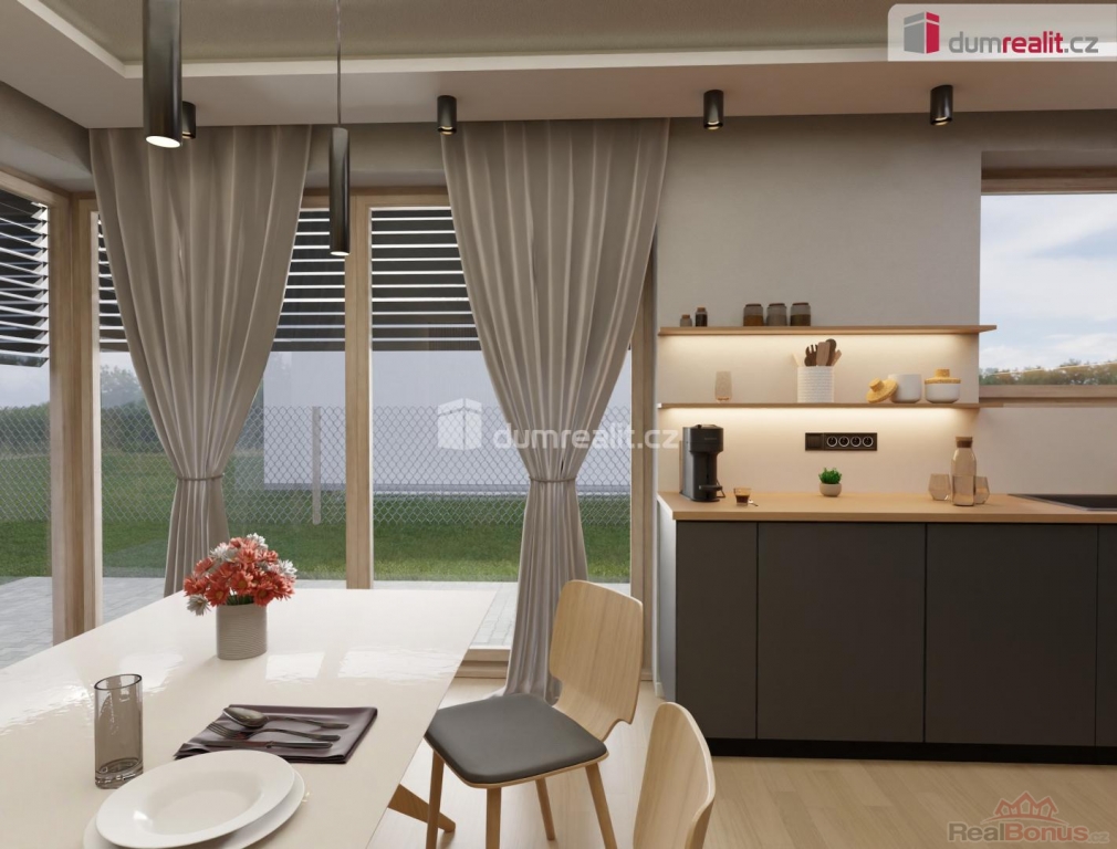 , Dumrealit.cz Vám zprostředkuje exkluzivní nabídku výstavby patrového nízkoenergetického rodinného domu typu 4+kk s garáží a terasou nebo jako 5+kk v provedení na klíč v Ludkovicích. Projekt patrového ekonomického domu zajištuje aktuální potřeby dnešní doby se zastavěnou plochou 89 m a užitnou plochou 149 m. Jedná se o kvalitní zděnou stavbu z materiálu Porfix 300. Optimální půdorys poskytuje výborný poměr mezi velikostí plochy obvodových stěn a vnitřního prostoru. Minimální plocha obvodových stěn takto šetří náklady nejen při výstavbě, ale i při vytápění domu. Ekonomický dům je navrhnutý tak, aby měsíční provozní náklady na tento dům byly přibližně třikrát nižší než u bytu podobné podlahové výměry. Prostředky ušetřené na provozu můžete použít například na splátky hypotéky. Uvedená cena obsahuje základovou desku, projekt, DPH a stavba bude provedena na klíč a předána k okamžitému užívání. Kolaudace je samozřejmostí. (Součástí ceny není kuchyňská linka a světla dokážeme za zvýhodněných podmínek zajisti přes naše dodavatele). V uvedené ceně můžete počítat také s finálními povrchovými úpravami exteriéru i interiéru, a to včetně elektroinstalací, sanitárního vybavení s bateriemi, interiérovými dveřmi včetně obložek a vytápění bude řešeno teplovodním podlahovým topením v kombinaci tepelného čerpadla se 180L zásobníkem na teplou vodu. Dle dohody změníme systém vytápění nebo vystavíme komín pro krbové kamna nebo pro využití krbové vložky. Kryté garážové stání spojené s domem nebo terasu za příplatek. Pro náročnější klienty máme nabídku nadstandardního vybavení chytré domácnosti, klimatizaci, externí žaluzie, rolety, rekuperaci nebo fotovoltaiku. Úprava dispozice nebo tvaru domu povolena. Délka výstavby od vydání stavebního povolení 12-13 měsíců. Inženýrské sítě v dosahu. Pozemek je svažitý o výměře 1300 m o rozměrech 15,5 m široký a 86 m dlouhý a je v územním plánu určený pro výstavbu rodinného bydlení a jeho poloha je situována mezi rodinnými domy. Více u makléře a to včetně dohodnutí se na prohlídce. Také nabízíme možnost si projít naše hotové domy. Změna za jiný dům je možná. Doporučuji. Ev. číslo: 653937. Energetický štítek: A (50 kWh/m2/rok).