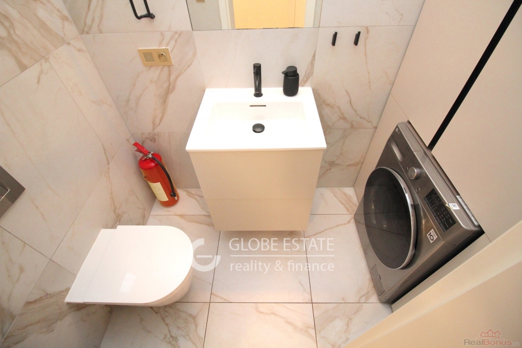 Interiér je navržen s ohledem na maximální efektivitu a komfort. Naleznete zde samostatnou kancelář pro soustředěnou práci, prostorný open space, který podporuje týmovou spolupráci, plně vybavenou koupelnu s toaletou, samostatnou toaletu pro hosty s vestavěnou skříní a pračkou, praktický kuchyňský kout a vestavěnou skříň na chodbě pro dostatek úložného prostoru.