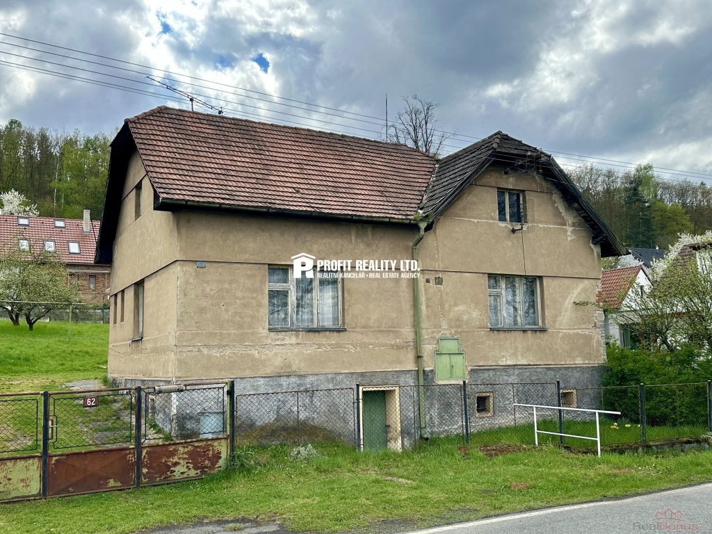 Zprostředkujeme vám prodej rodinného domu v obci Otročiněves, okres Beroun. Objekt má stáří 100 let a je určen ke kompletní rekonstrukci. Dům je z větší části podsklepený. Ve sklepě je několik místností sloužících jako kotelna, sklad uhlí, apod. V přízemí domu se nachází vstupní chodba, dva pokoje, kuchyň, prostor na vybudování koupelny, komora a vstup do sklepa a na půdu. Půda je vhodná k další vestavbě a nachází se v ní jedna obytná místnost. Střecha domu je polovalbová a jako střešní krytina jsou použity pálené tašky. Objekt je napojen na elektřinu, možnost napojení na veřejný vodovodní řad, kanalizaci a plyn. Na objekt navazuje přístavek s dvěma garážemi. Na kompletně oploceném, mírně svažitém pozemku o celkové výměře 869 m2 jsou vzrostlé stromy. Dům je určen ke kompletní rekonstrukci. Dům se nachází v krásné přírodě, poblíž CHKO Křivoklátsko. Nájezd na dálnici D5 je vzdálen 8 km. Okresní město Beroun 10 km.
