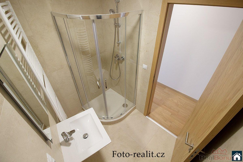 Koupelna je vybavena sprchovým koutem a WC je společné.