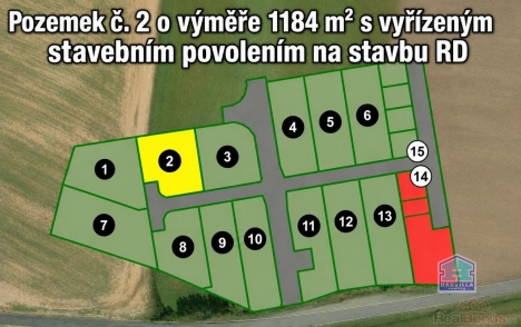 pozemek č. 2 ? 1184 m2 - 3.711.840,- Kč (vyřízené st. povolení)