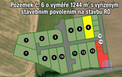 pozemek č. 6 ? 1244 m2 - 3.899.940,- Kč (vyřízené st. povolení)