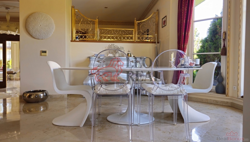 Dispozice místností je 5+1. Zastavěná plocha činí 295 m, celková podlahová plocha včetně krytého bazénu a dvojgaráže je 458 m, obytná plocha 350 m. Dům se nachází na pozemku o výměře 919 m. Součástí domu je dvojgaráž.