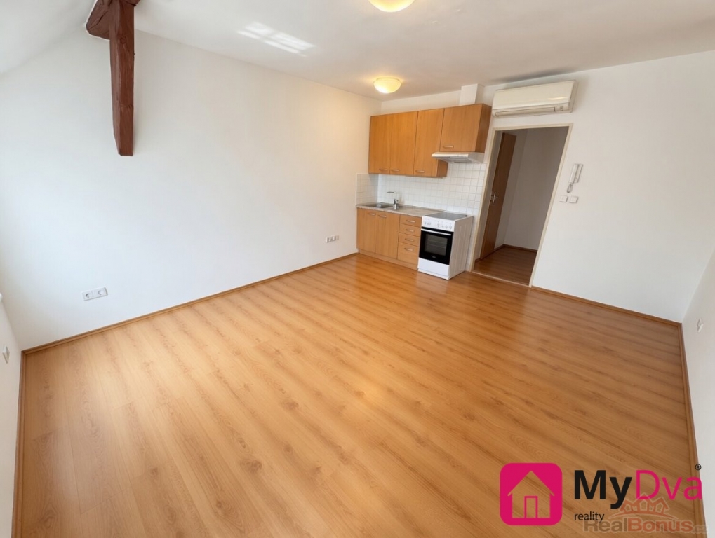 Nabízíme k pronájmu cihlový byt o dispozici 1+kk a podlahové ploše 28 m2. Skládá se z předsíně, obývacího pokoje spojeného s kuchyňským koutem, koupelny se sprchovým koutem a toalety.