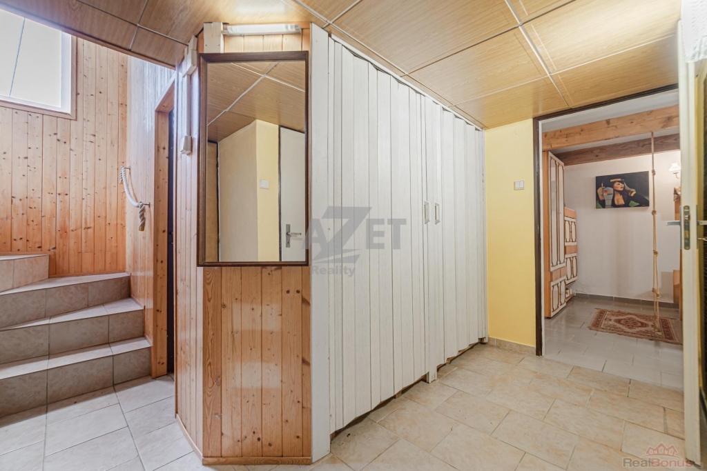 Pozn.: Kombinace dřevěných podlah s koberci v ložnicích a plovoucí podlahy v kuchyňské a chodbové části. Kvalitně izolovaný strop zvýrazňuje tepelný komfort prostor.
