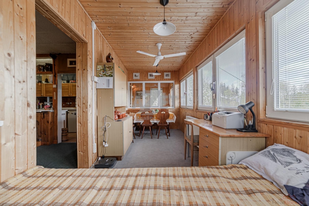 - veranda využívaná také jako ložnice a jídelní kout (se vstupem z obývací části)