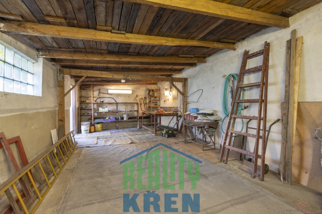 K domu dále náleží několik dalších vedlejších staveb na pozemku, například prostorná (35m2) garáž na dvě auta spojená s dílnou v zadní části, dvě další obytné místnosti s lokálním vytápěním v přístavku domu, bývalá prádelna a několik skladových prostor vpravo při vjezdu na pozemek.