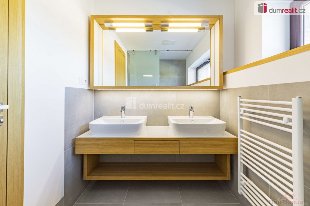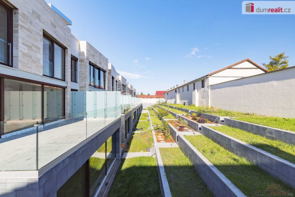 cena je vč. odměny RK, Hledáte nadstandartní dům v blízkosti budoucí stanice metra? Tak právě pro vás zde mám multifunkční, vícegenerační rodinný dům (B8 - rohový) s dispozicí 6+kk v Praze 12 Libuš, který je vzdálen pouze 2 minuty pěšky od budoucí stanice metra D - Libuš a je v uzavřeném rezidenčním areálu s dalšími 15 domy. Celková podlahová plocha domu je 378 m, jsou zde dvě terasy (145 m), plocha pozemku je 619 m z toho zahrada má celkem 441 m. Dispozice tohoto moderního, nízkoenergetického domu tvoří v přízemí: prostorný obývací pokoj + kk (70,6 m) se vstupem na terasu (28,5 m), pracovna (22,7 m) s vlastní koupelnou s WC (3,5 m), dále společná koupelna (4,5 m) a zádveří (5 m). Po schodišti (12 m) obloženém dřevem se dostaneme do 1. patra (2NP), kde je hlavní ložnice (18,5 m) s šatnou (10,1 m) a vlastní koupelnou s WC (10,7 m), dále pak šatna (4,8 m), hala (10,3 m) a dva dětské pokoje. První pokoj (18,4 m) má vlastní koupelnu (5,1 m) s WC, druhý pokoj (19,6 m) má také koupelnu (5,1 m). Přes samostatnou chodbu (11,7 m) se dostaneme ke schodišti (7,6 m) do 2. patra, kde se nachází panoramatická terasa 116,4 m, která je z části krytá (prostor sprchu nebo vířivku) a je orientována na východ, sever a západ. Z obývacího pokoje se po schodišti dostaneme do suterénu domu, kde je multifunkční místnost, kterou můžete zcela upravit podle svých potřeb. Tato místnost má nadstandartních 96,3 m a můžete zde mít opravdu cokoliv např. samostatnou bytovou jednotku 1+kk s koupelnou a WC, kinomístnost, karaoke, panský klub, vnitřní bazén, fitness nebo svoji soukromou pracovnu (např. pro advokáty, architekty, projektanty, daňové poradce apod.). Tato místnost je nedokončená a je připravena na úpravy dle vašich představ. Místnost má také přístup přímo z garáží velmi výhodné. V suterénu domu je dále chodba (4,9 m) se zádveřím a sklep / tech. místnost (18,8 m) a komora (5 m), kde je umístěný plynový kondenzační kotel. Ze suterénu je také vstup na zahradu (144 m), která je kaskádovitá. Další zahrada je před vstupem do domu (44 m) ve vnitrobloku. Okna jsou dřevěná, v obývacím pokoji a na terase je HS portál, u všech oken je příprava ne před okenní žaluzie, v domě je zavedeno optické vlákno na internet, podlahy jsou dřevěné vč, obložení schodiště. Osobně mohu doporučit, můj velmi blízký přítel zde bydlí, rád vám jako zájemci o koupi může předat další informace. Celý projekt je umístěn na konci slepé ulice se vstupem do budoucího parku. Stanice metra D - Libuš bude v docházkové vzdálenosti - realizace 2032. Velmi vám doporučuji prohlídku tohoto domu 6+kk (378 m), který vás svou velikostí ohromí, dispozicí nadchne, a nakonec chytí za srdce. Kompletní prezentace je na našich webových stránkách. Máme zde na prodej i dům A8, který je identický (zrcadlově obrácený), pozemek 548 m, cena je nižší. Ev. číslo: 656015. Energetický štítek: B (81 kWh/m2/rok).