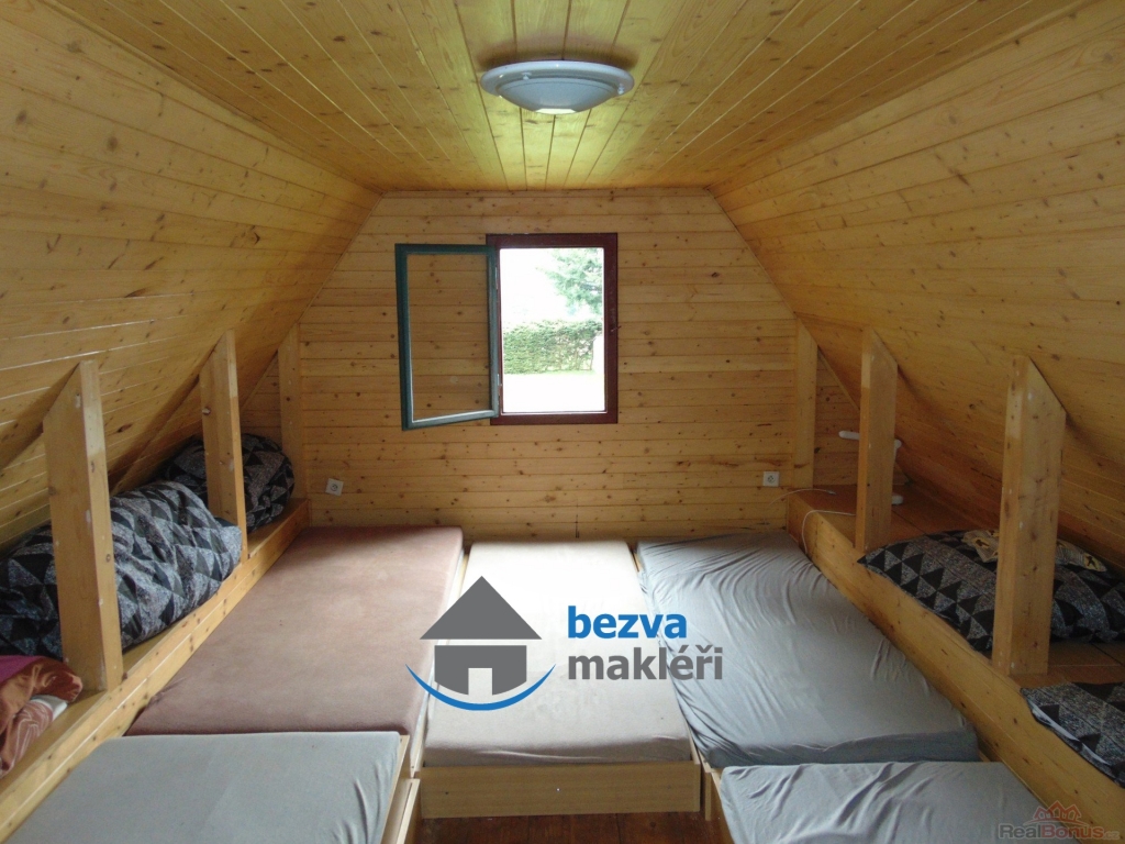 V přízemí chaty se nachází obývací pokoj s kuchyní, ložnice a koupelna vybavená sprchovým koutem, WC, umyvadlem a bojlerem na ohřev vody. V patře je další místnost, která slouží jako ložnice. Venkovní kůlna slouží jako úložný prostor pro nářadí i zahradní nábytek a je tu uloženo dřevo na topení. Přidanou hodnotou je terasa s možností letního posezení, venkovní ohniště a vlastní studna na kterou je chata napojena. K vytápění slouží kamna na dřevo. Celý objekt je ve výborném stavu.