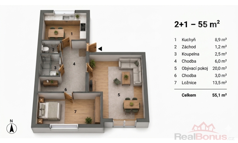 | Užitná plocha | 55 m² |