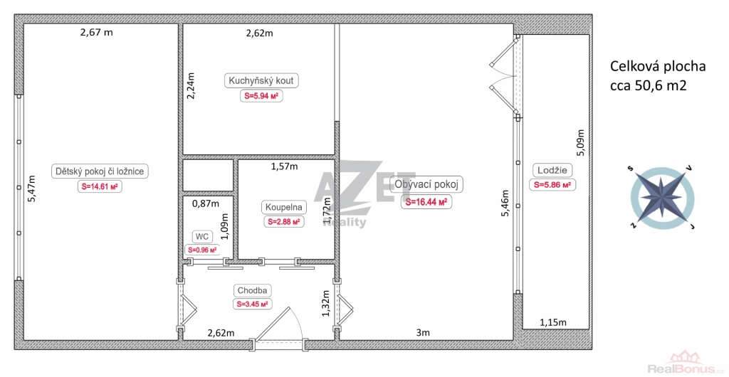 Rozměry jednotlivých místností jsou uvedeny v půdorysu bytu.